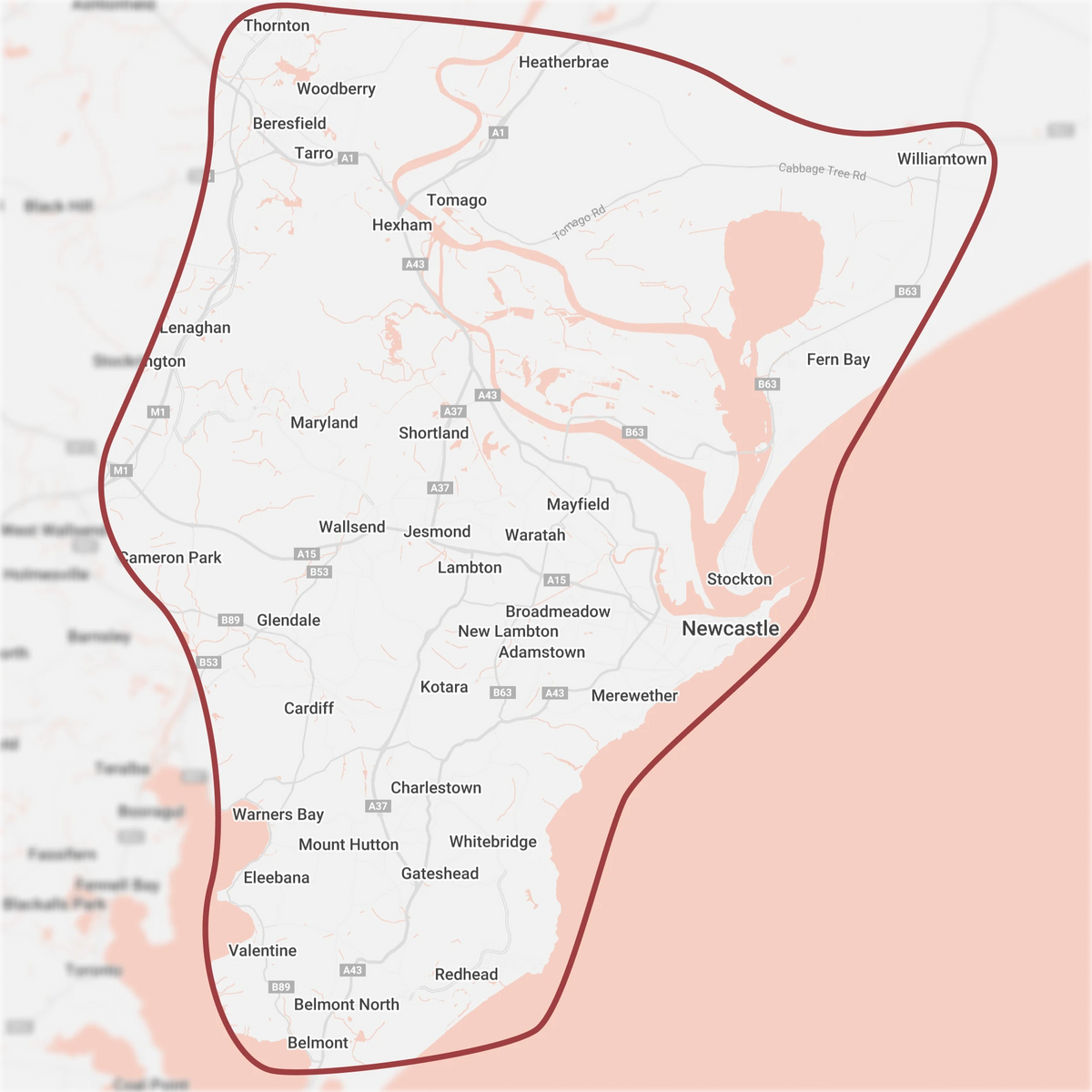 We deliver Monday to Friday all over Newcastle, Northern Lake Macquarie and some parts of lower Port Stephens and the lower Hunter. The map below is a general guide of some of the most common delivery suburbs. If you're unsure about an area, give us a call on (02) 4960 9506.If you place an order out of our delivery zone or in an area that is close to our limit and we are unable to fit it in that day, then we may contact a florist in our network that is close to the recipient and get them to do it on our behalf.