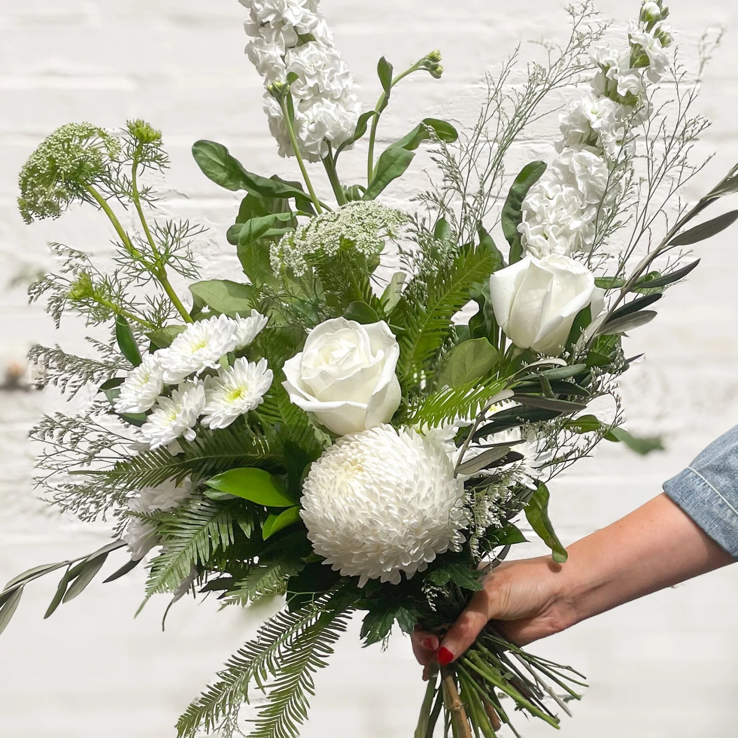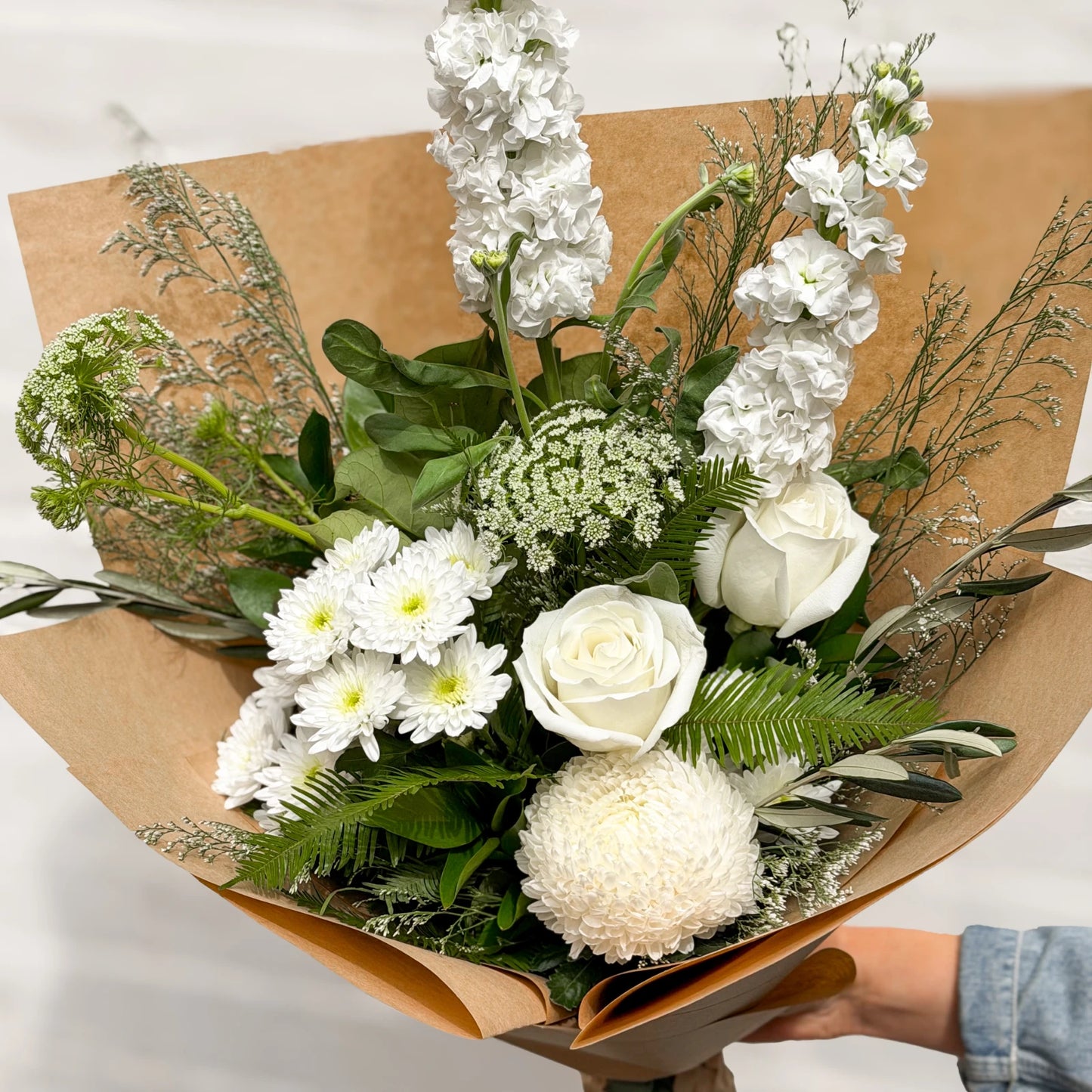 Elegant and timeless, our White & Green Florals are a serene all-white floral design created to bring calm and grace to any space. Ideal for sympathy, funerals, new beginnings or minimal interiors, it’s a pure expression of simplicity and sophistication.